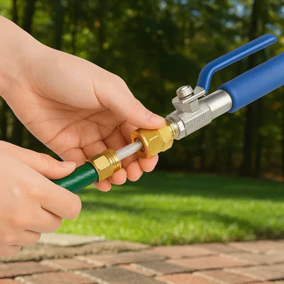 Simply connect JetFlux to your standard garden hose using the included brass coupler or adaptor.
